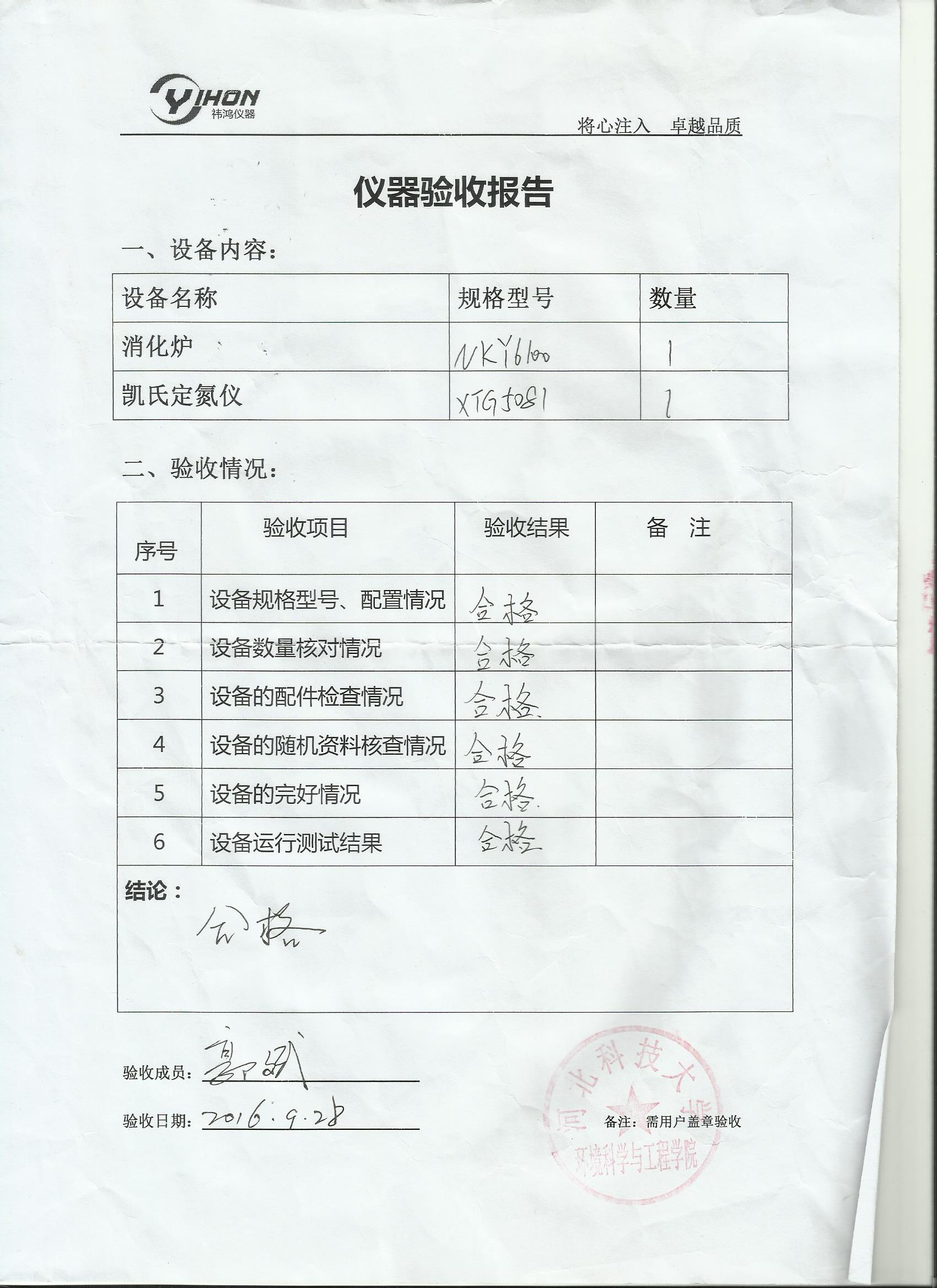 我們祎鴻人嚴(yán)格按照評(píng)標(biāo)委員會(huì)對(duì)產(chǎn)品質(zhì)量,生產(chǎn)周期,售后服務(wù)等等的要求,逐條落到實(shí)處。按時(shí)安質(zhì)按要求的完成了本次投標(biāo)項(xiàng)目,以下是儀器驗(yàn)收?qǐng)?bào)告。